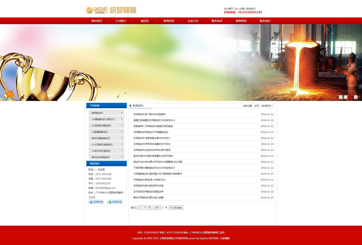 模板編號:     B1767 紅色機械電子設備類企業(yè)網站織夢模板