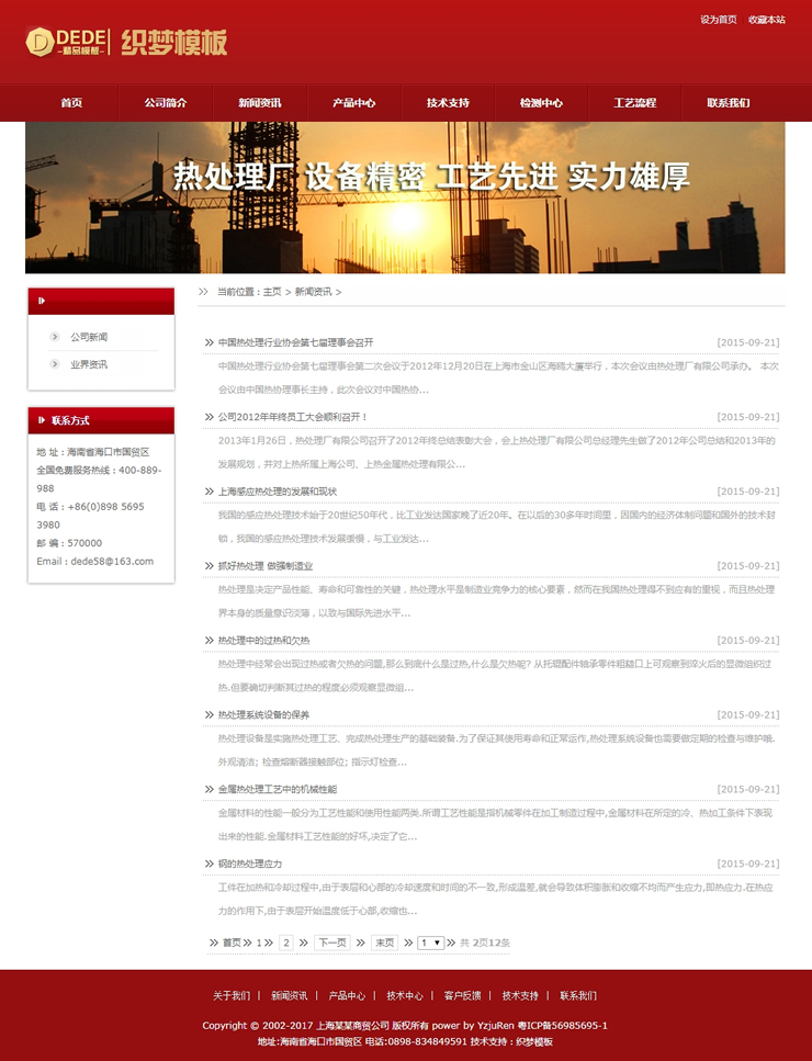 主頁 > 網(wǎng)站建設 > 網(wǎng)站模板 > 農(nóng)業(yè)、工業(yè)、五金、通用 > 紅色工業(yè)機械熱處理企業(yè)網(wǎng)站織夢模板