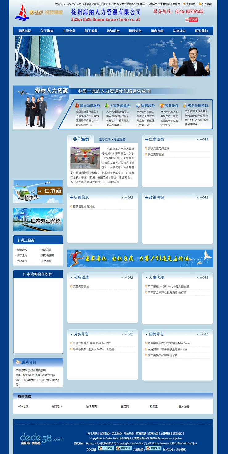 模板編號:     B1835 藍(lán)色人力資源招聘類企業(yè)網(wǎng)站織夢模板