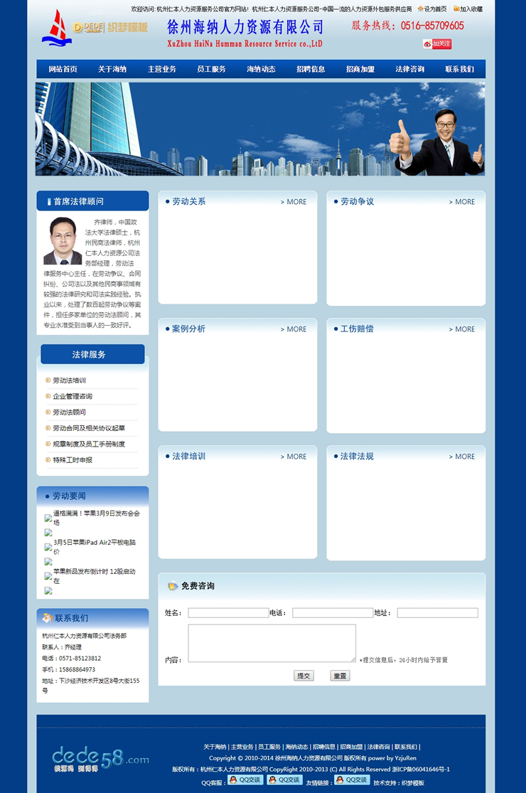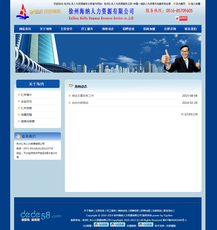 藍(lán)色人力資源招聘類企業(yè)網(wǎng)站織夢模板