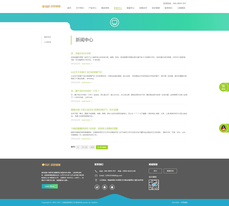 模板編號:     B1866 綠色清新節(jié)能環(huán)保凈水器類企業(yè)網(wǎng)站織夢模板