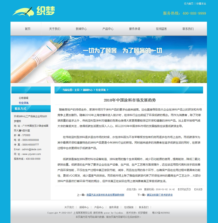 模板編號:     B1870 環(huán)保涂料化工產(chǎn)品類企業(yè)網(wǎng)站織夢模板