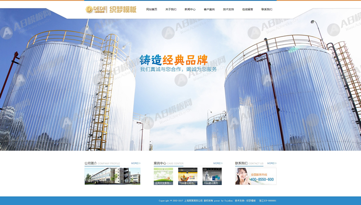 模板編號:     B1923 簡潔大氣的藍色集團企業(yè)網站源碼 織夢集團模板