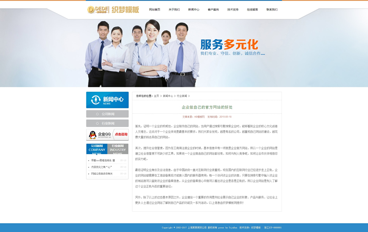 簡潔大氣的藍色集團企業(yè)網站源碼 織夢集團模板