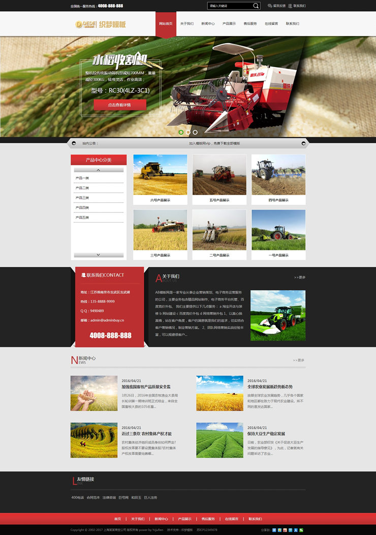 模板編號(hào):     B2038 農(nóng)業(yè)機(jī)械類網(wǎng)站源碼農(nóng)機(jī)產(chǎn)品網(wǎng)站織夢模版(帶