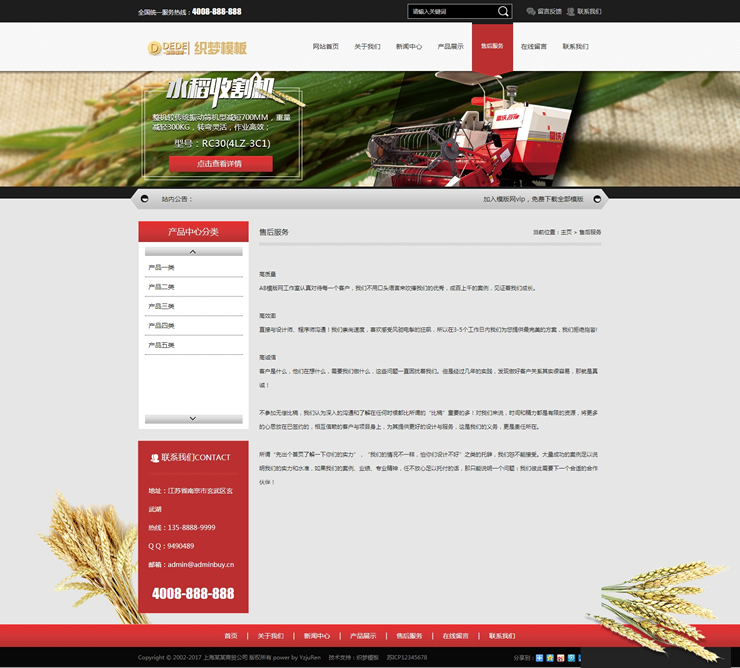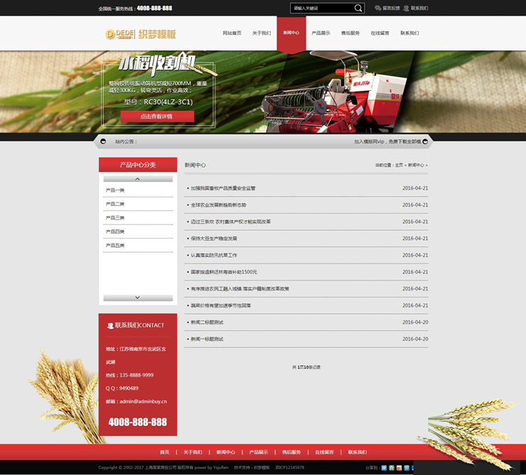 農(nóng)業(yè)機(jī)械類網(wǎng)站源碼農(nóng)機(jī)產(chǎn)品網(wǎng)站織夢模版(帶
