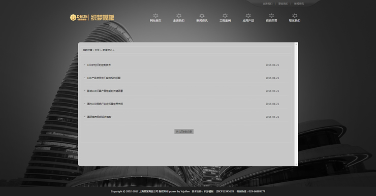 主頁(yè) > 網(wǎng)站建設(shè) > 網(wǎng)站模板 > 農(nóng)業(yè)、工業(yè)、五金、通用 > 黑色寬屏LED照明設(shè)備織夢(mèng)源碼 LED燈具照明企業(yè)網(wǎng)