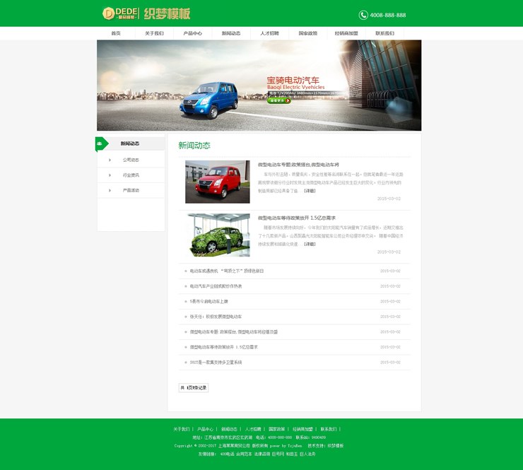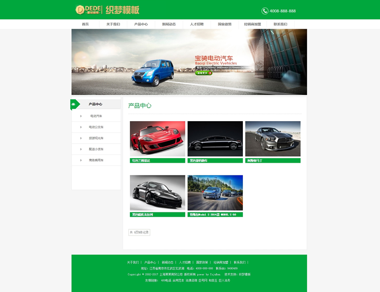 電動汽車生成企業(yè)汽車廠商展示類dedecms織夢模板