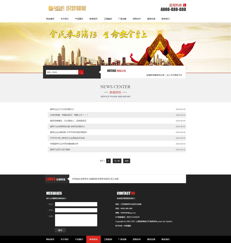 消防網(wǎng)站源碼安全消防器材類企業(yè)織夢模板