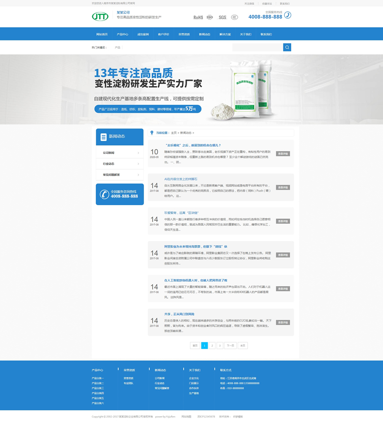 主頁 > 網(wǎng)站建設(shè) > 網(wǎng)站模板 > 農(nóng)業(yè)、工業(yè)、五金、通用 > 藍(lán)色營銷型淀粉原材料銷售網(wǎng)站織夢模板網(wǎng)站源碼下載