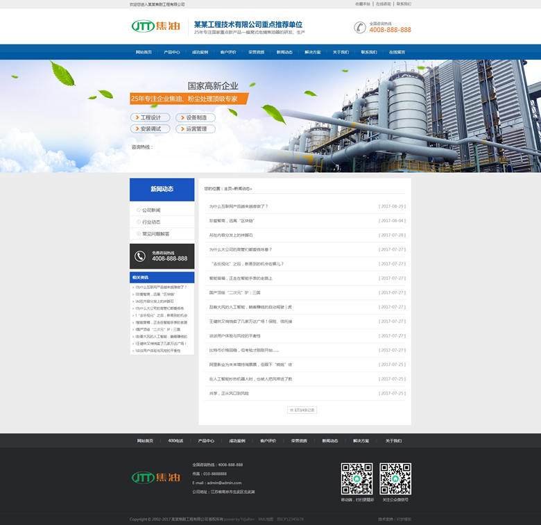 營(yíng)銷型焦油環(huán)保設(shè)備類網(wǎng)站織夢(mèng)模板藍(lán)色營(yíng)銷型工業(yè)設(shè)備網(wǎng)站源碼下載