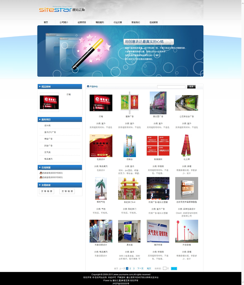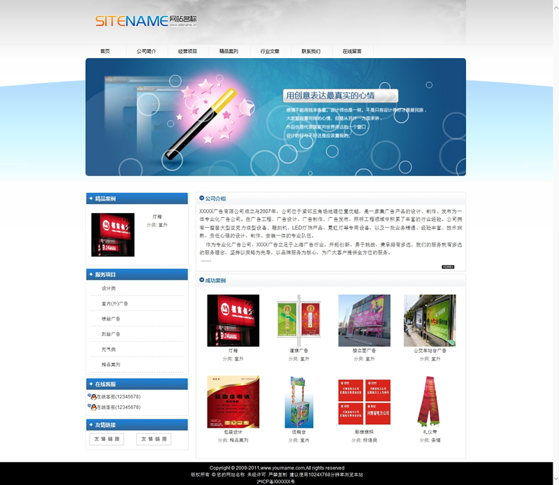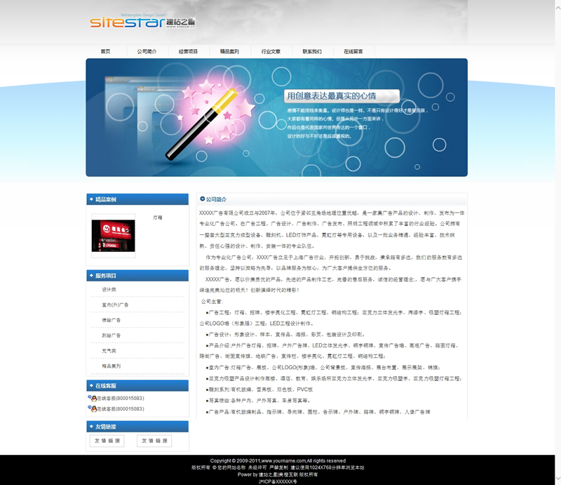 模板編號:     S1367 精品廣告設計綜合設計類公司建站模板