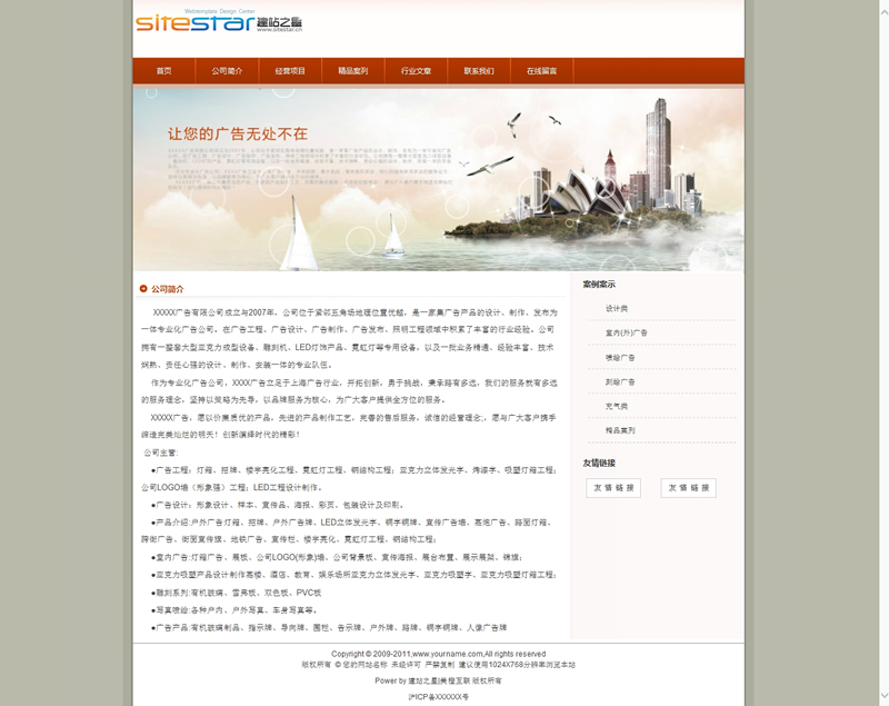 二、本模板可免費(fèi)提供給廣大建站愛(ài)好者學(xué)習(xí)使用,但不提供任何形式的咨詢解答服務(wù)。為了尊重本公司的設(shè)計(jì)成果,請(qǐng)使用模板時(shí)添加本站網(wǎng)址為友情鏈接,否則本站將追究其版權(quán)使用的權(quán)限。