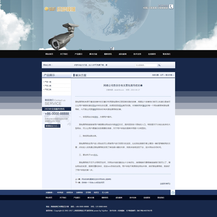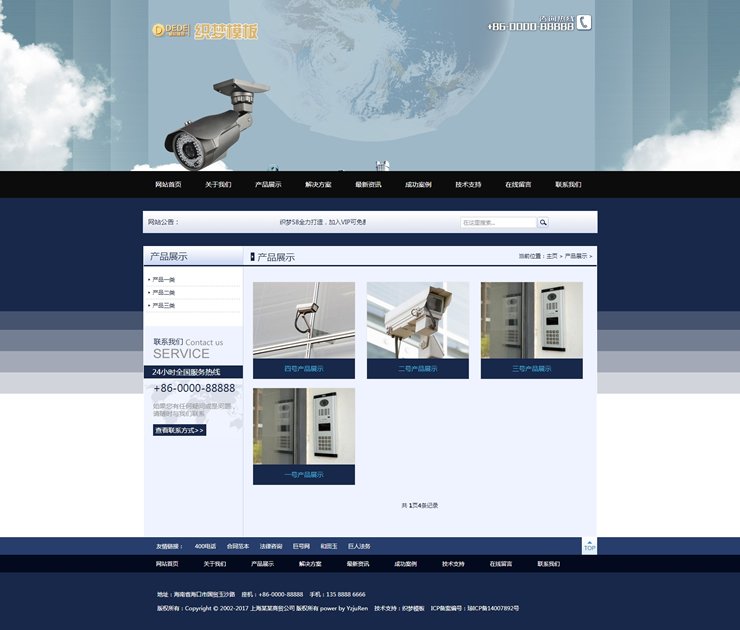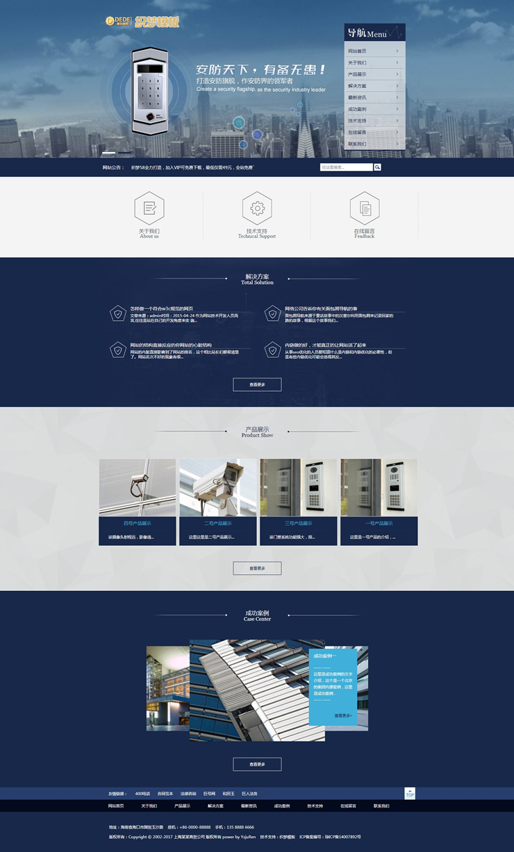 模板編號:     B1666 藍(lán)色大氣安防設(shè)備企業(yè)通用網(wǎng)站織夢源碼