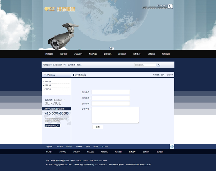 藍(lán)色大氣安防設(shè)備企業(yè)通用網(wǎng)站織夢源碼