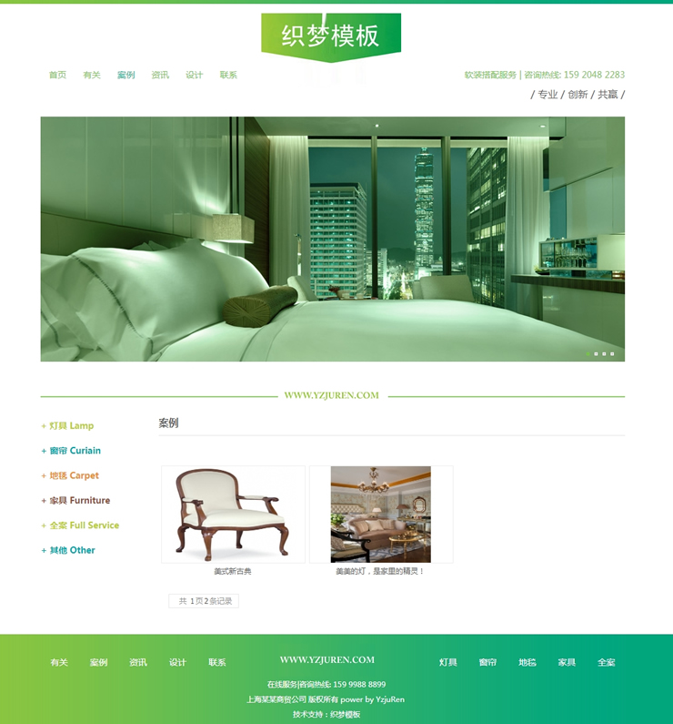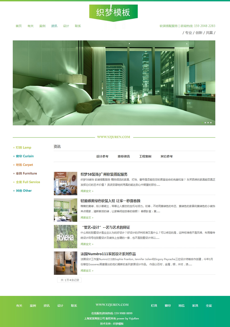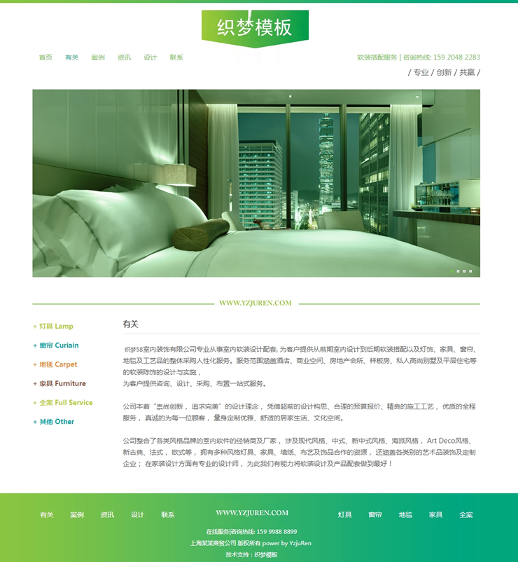 模板編號:     B1745 綠色室內(nèi)裝修裝飾類公司企業(yè)織夢模板