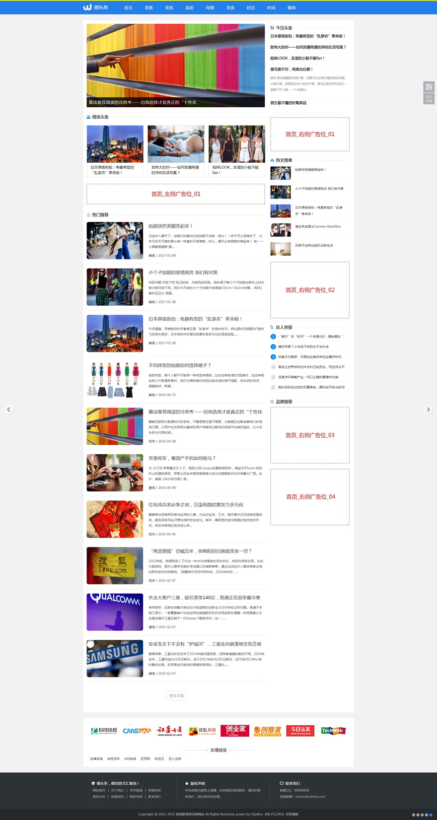 (帶手機(jī)版數(shù)據(jù)同步)藍(lán)色新聞博客自媒體頭條網(wǎng)織夢模板 新聞博客資訊類網(wǎng)站源碼下載