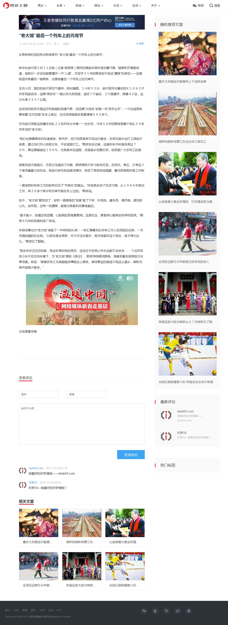 響應(yīng)式主題博客新聞自適應(yīng)手機端織夢模板