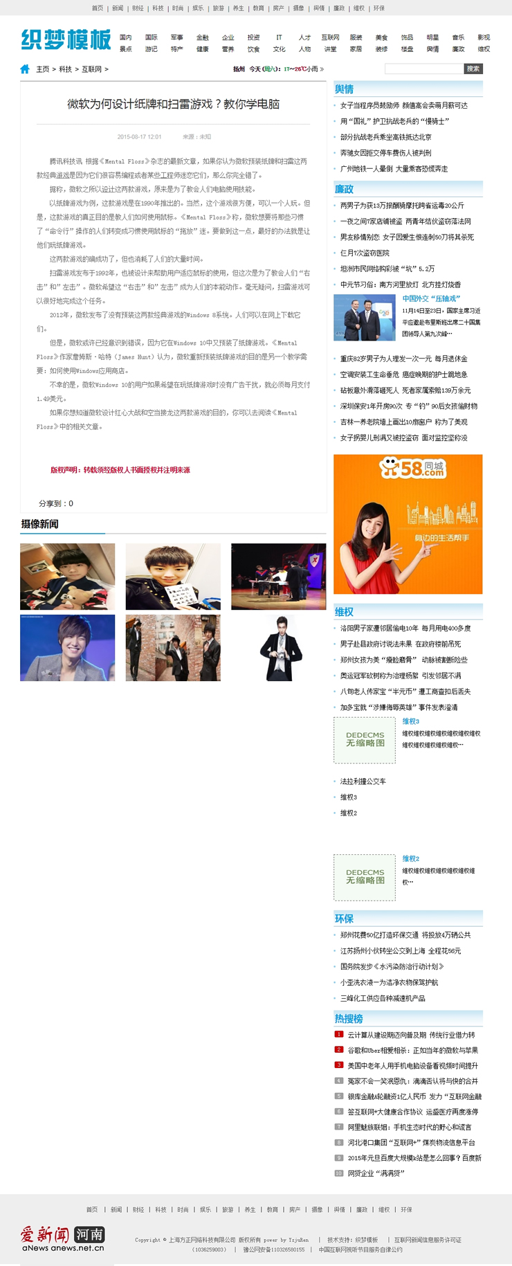 模板編號:     B1625 最新升級仿愛新聞文章門戶織夢模板