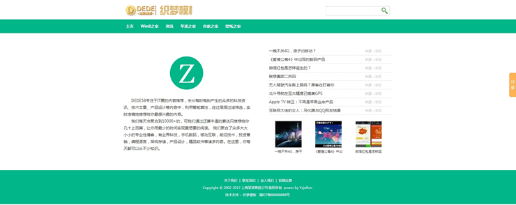 模板編號:     B1742 DEDECMS綠色簡潔文章網(wǎng)站源碼模板
