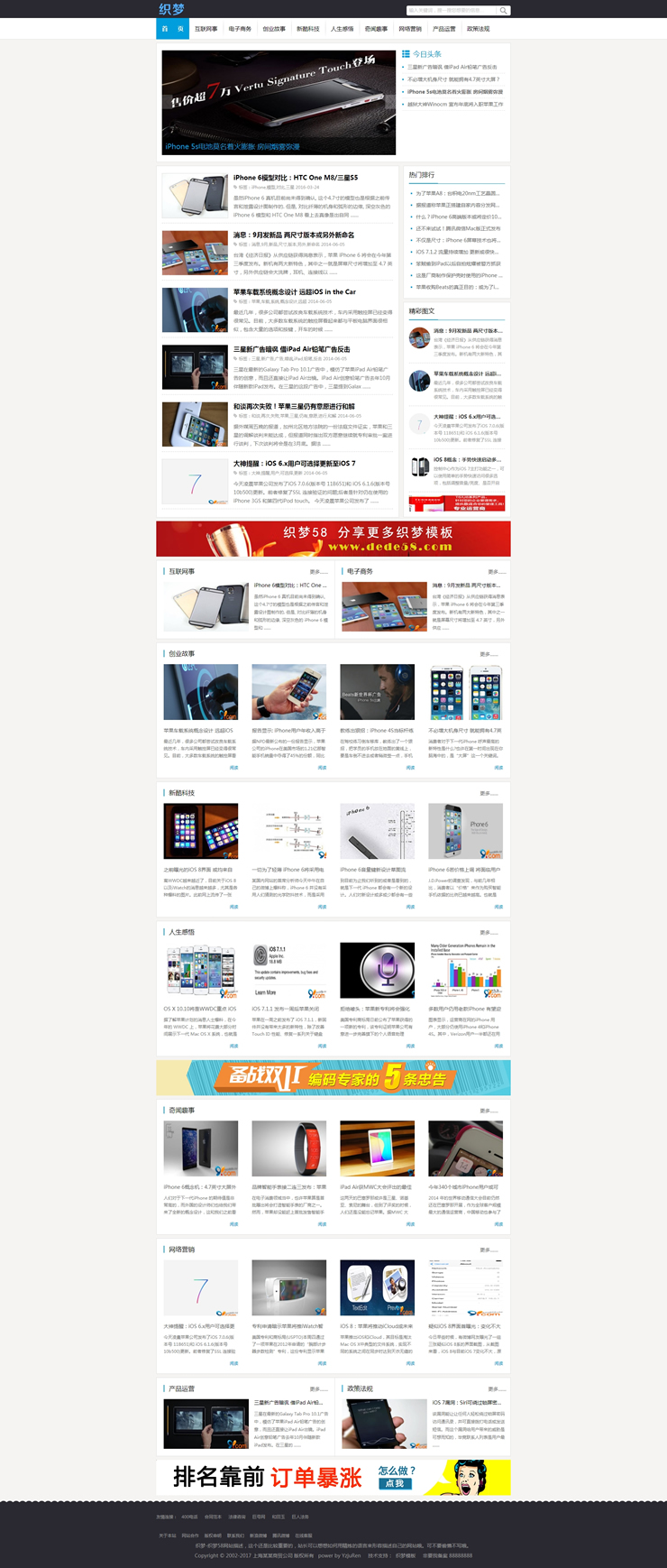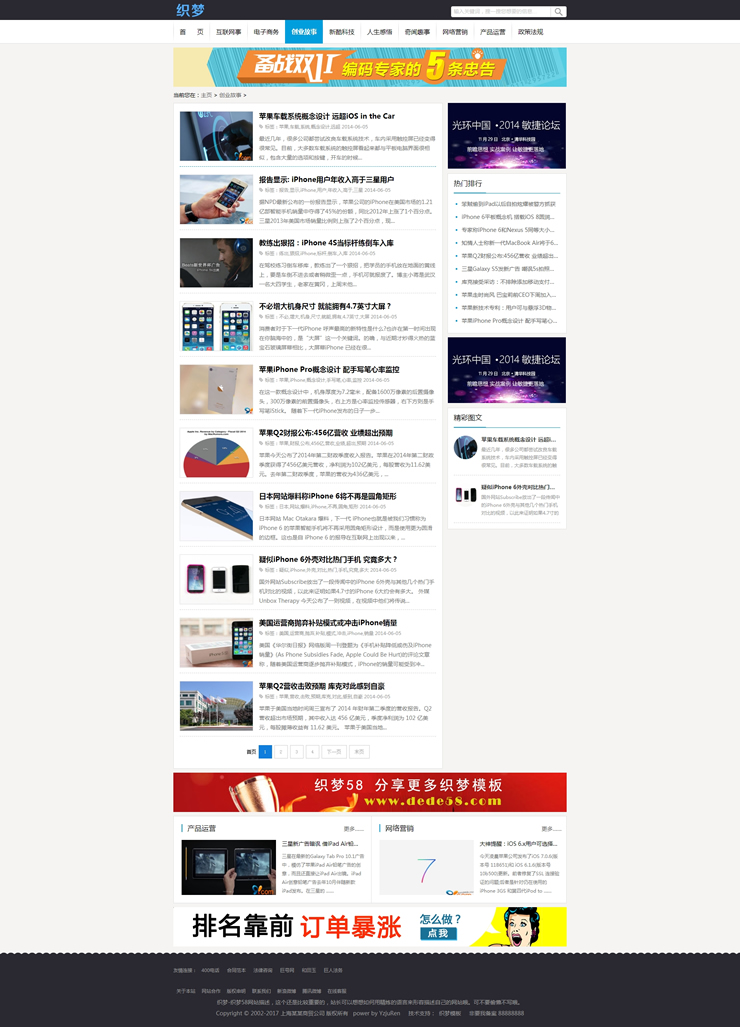 資訊文章類織夢模板帶整站數(shù)據(jù)