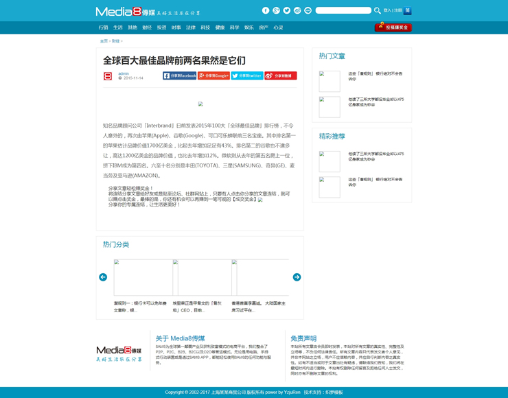 模板編號:     B1885 藍色大氣娛樂資訊文章網(wǎng)站模板