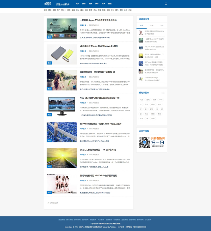 藍白博客新聞站群通用文章類整站模板