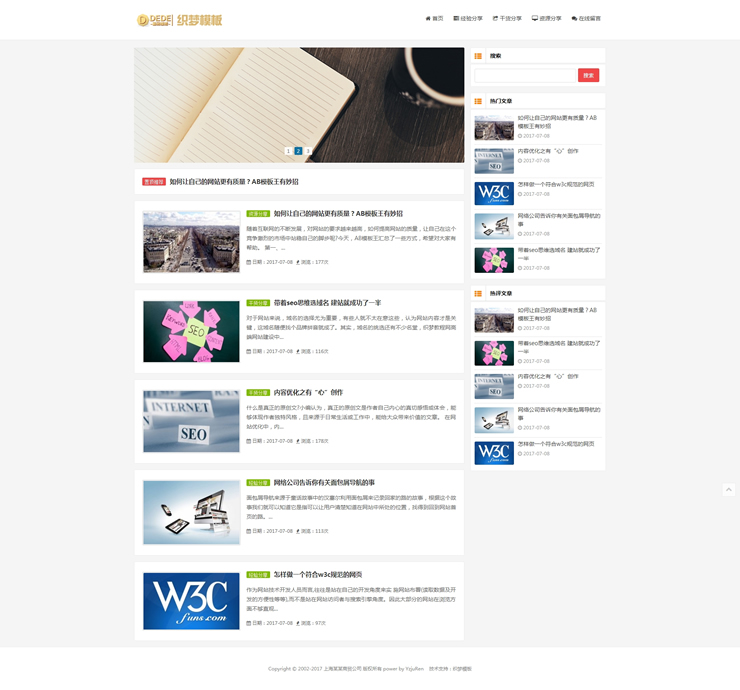 響應(yīng)式簡(jiǎn)潔博客主題織夢(mèng)模板HTML5博文字新聞資訊