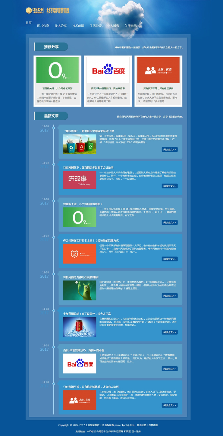 響應(yīng)式個人博客生活日志織夢網(wǎng)站模板html5個人資