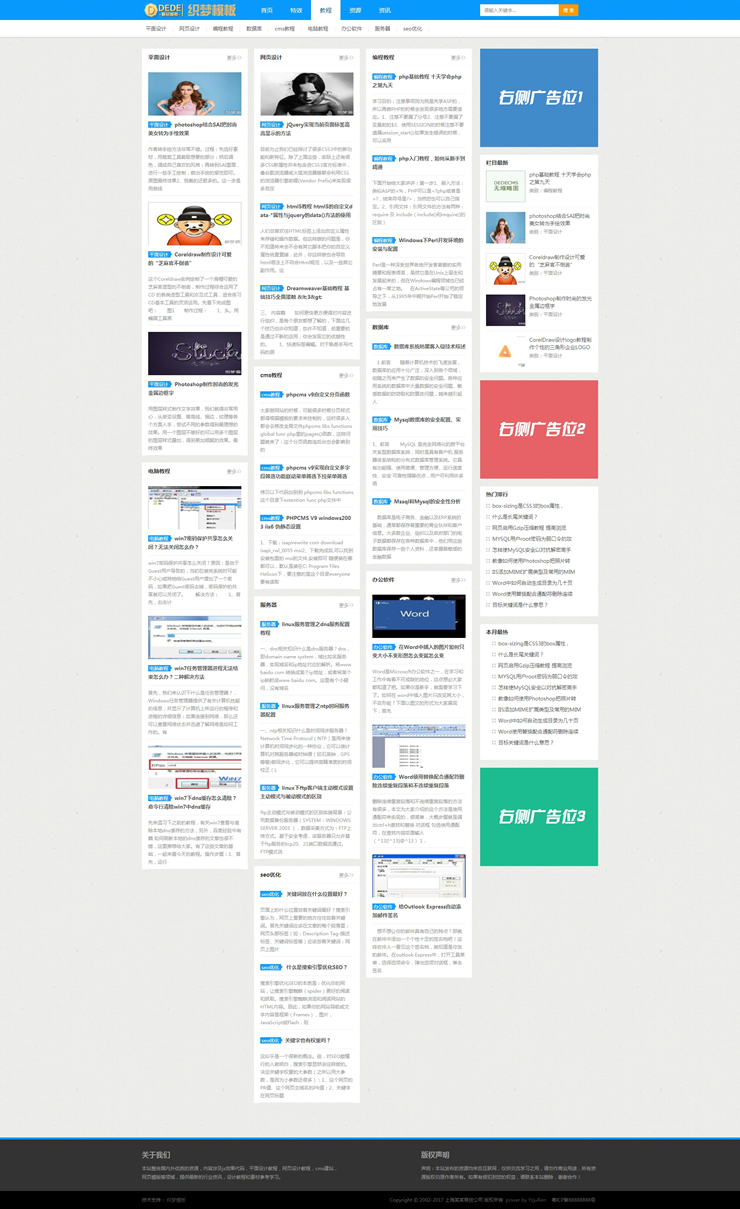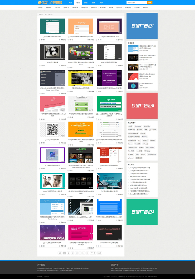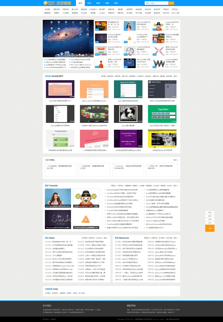 模板編號:     B2514 藍色素材資源文章類織夢模板站長資源素材教程
