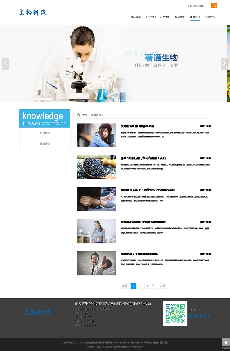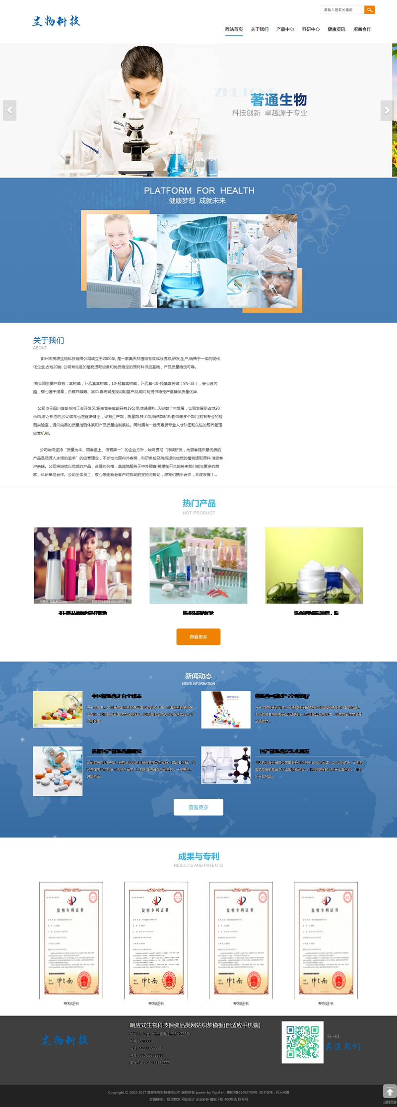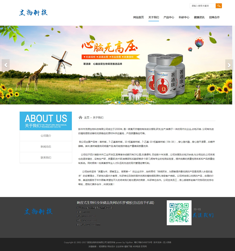響應式生物科技保健品類網(wǎng)站模板(自適應手機端