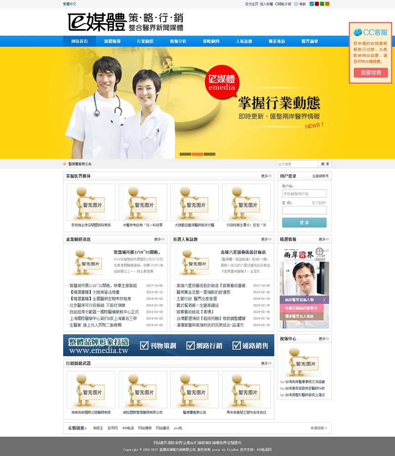 模板編號:     B1104 醫(yī)媒體資源信息類織夢網站源碼
