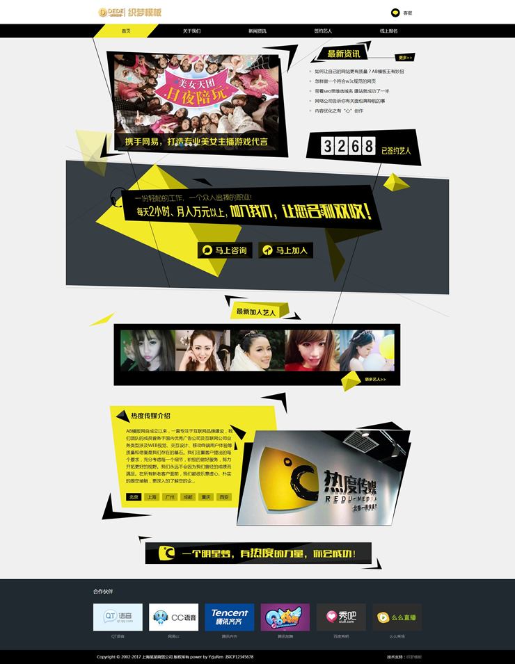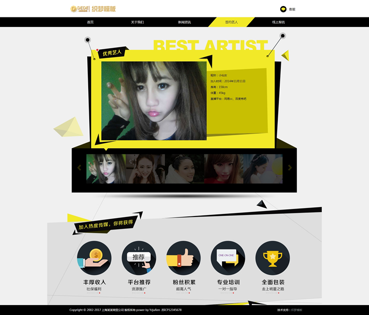 明星藝人網(wǎng)站源碼 模特禮儀類織夢(mèng)網(wǎng)站模板