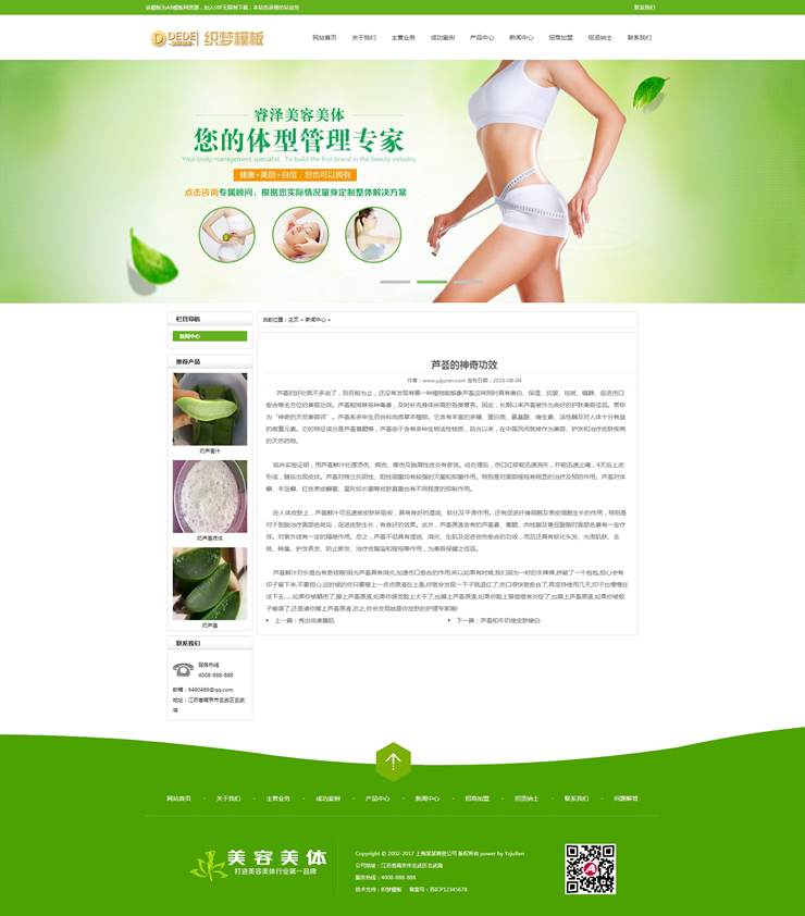 綠色減肥美體網(wǎng)站源碼健美瑜伽美容館網(wǎng)站織夢