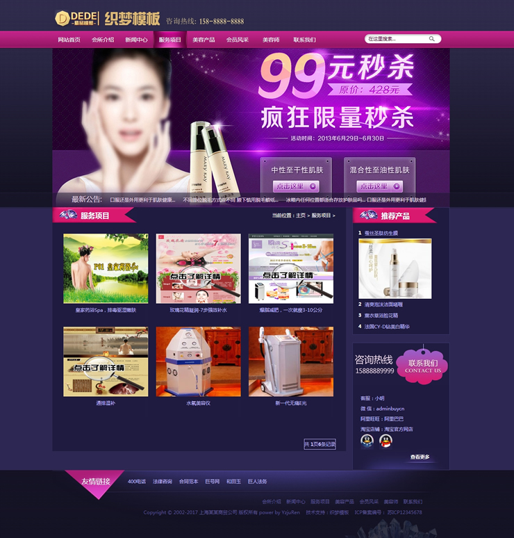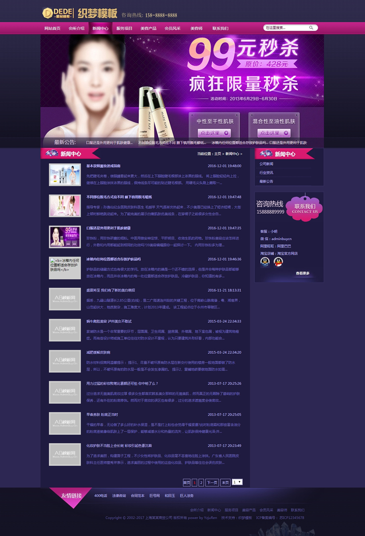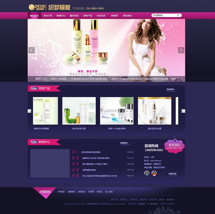 美容養(yǎng)生會所織夢網(wǎng)站源碼紫色化妝美容產(chǎn)品網(wǎng)