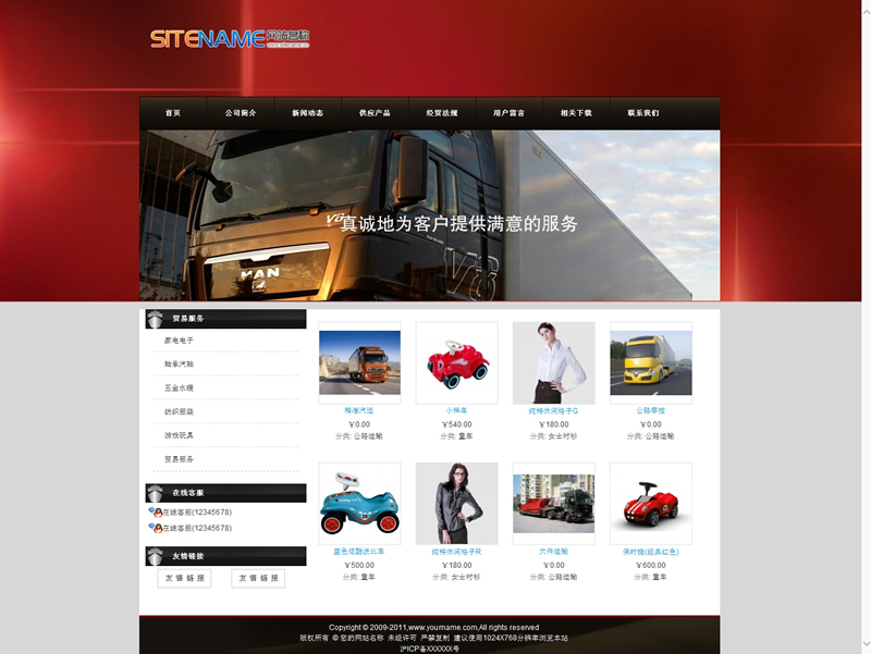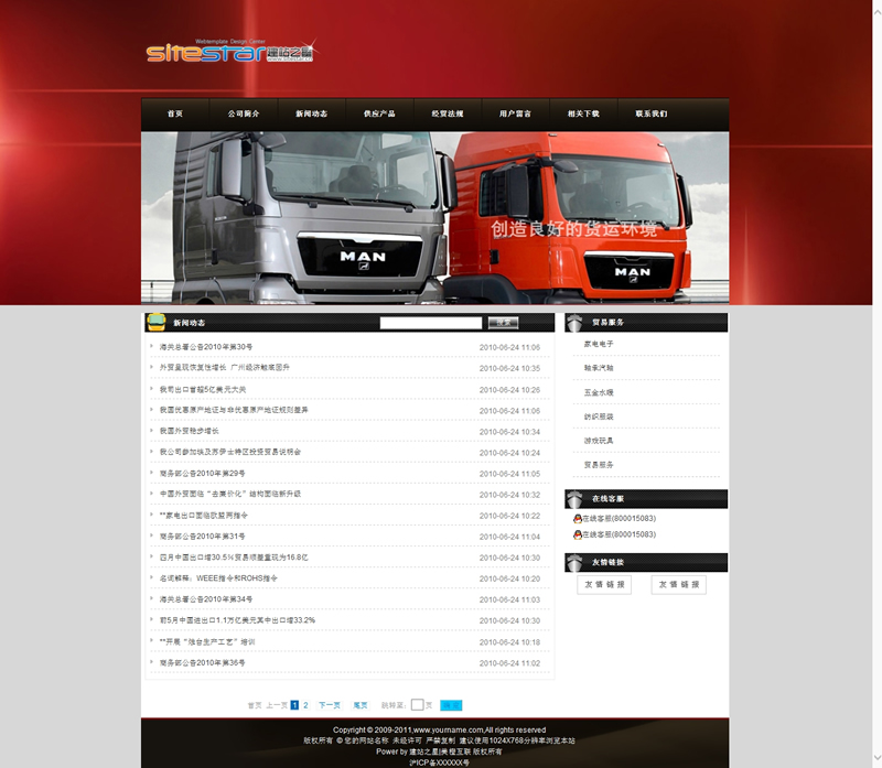 模板編號(hào):     S1180 汽車貨運(yùn)企業(yè)物流貿(mào)易貨運(yùn)公司建站模板