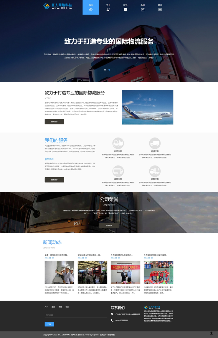 模板編號:     B1566 HTML5自適應(yīng)響應(yīng)式國際貨運物流公司網(wǎng)站織夢模板