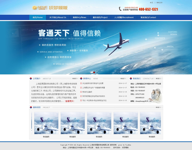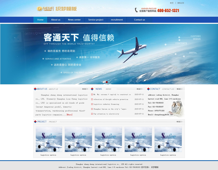 中英版藍色大氣物流公司企業(yè)網(wǎng)站整站織夢模板