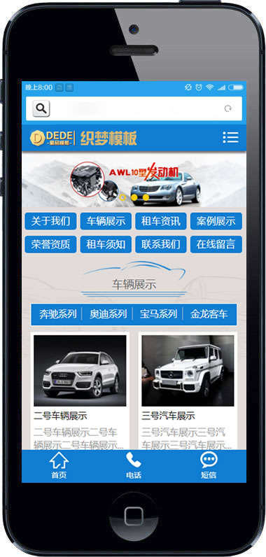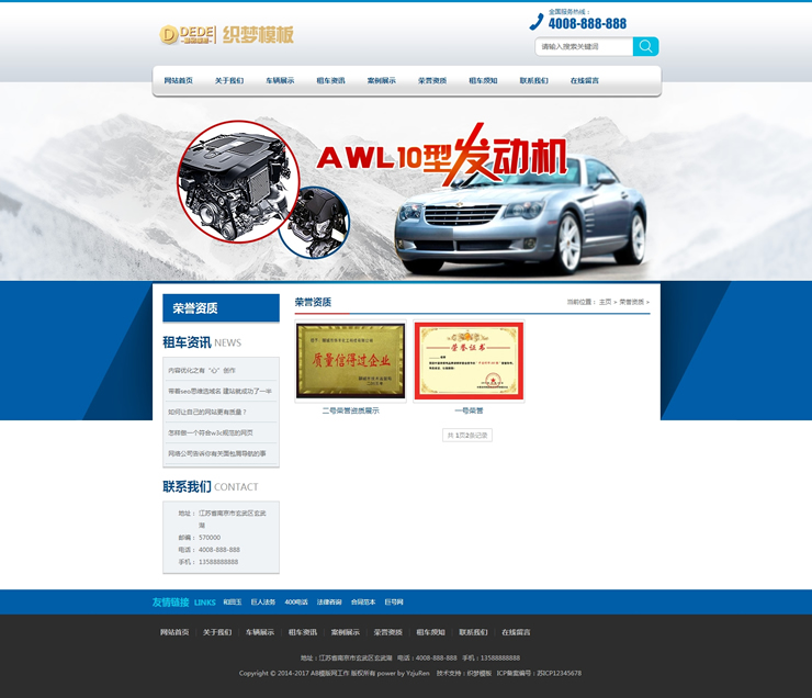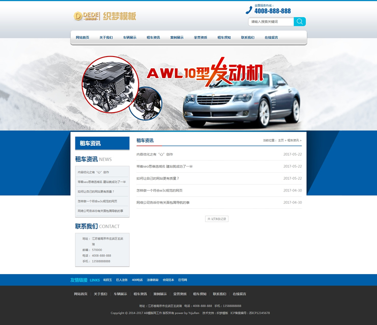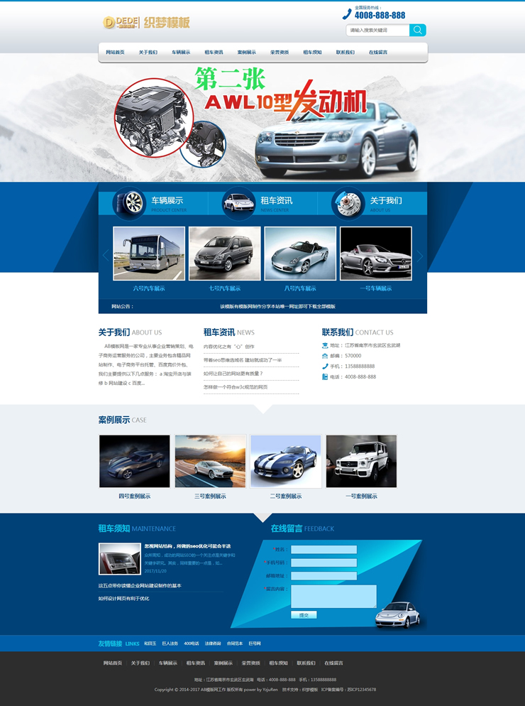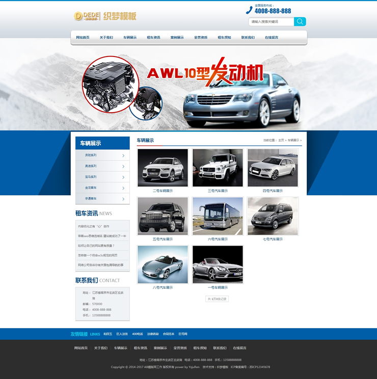 模板編號:     B2317 汽車零配件生產(chǎn)維修保養(yǎng)類織夢模板藍(lán)色汽車租