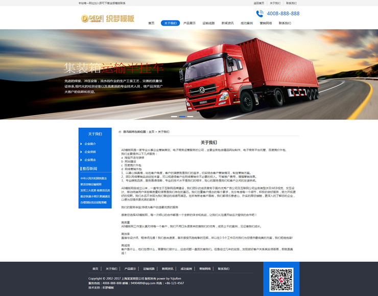 模板編號(hào):     B2333 貨物運(yùn)輸汽車貿(mào)易類織夢(mèng)模板物流托運(yùn)公司網(wǎng)站