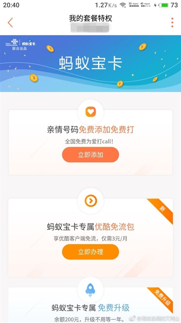 別的值得一提的是,當用戶的號碼變換為非螞蟻寶卡套餐時,需要先解除所有添加的親情號碼才能變換,如果是變換為其它螞蟻寶卡套餐,那么親情號碼關(guān)系連結(jié)不亂,用戶添加的親情號主叫則仍按其自身套餐資費收取。