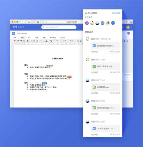 WPS云協(xié)作是WPS+云辦公最亮眼的特色之一,旨在幫手企業(yè)完成“隨時、隨地、高效、安適”的辦公辦事信息化建設,搭建跨平臺、跨設備、跨團隊共享協(xié)作和協(xié)同辦公?;谠苾Υ婧驮朴嬎慵夹g,WPS云協(xié)作最大的特色是完全開脫“當地”,所有存儲在WPS云辦公的文件只存在于云端,不占用電腦或手機內存。在WPS云協(xié)作中,企業(yè)內部的團隊成員可共同完成一份文檔的撰寫和編纂,每位成員的編纂不但清晰可見,并且所有版本都會實時自動生存。