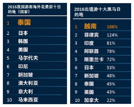 2016 年我國出境旅游花費(fèi)高達(dá) 1098 億美元,人均花費(fèi) 900 美元。雖然出境游人數(shù)只占旅游總?cè)藬?shù)的 3%,但是出境游消費(fèi)卻占到全國旅游花費(fèi)的 16%。