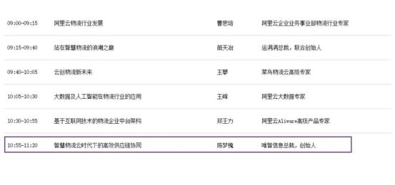 10月14日,唯智信息總裁陳夢(mèng)槐女士將在云棲大會(huì)新物流專場(chǎng)頒發(fā)題為“智慧物流云時(shí)代下高效供應(yīng)鏈協(xié)同”的主題演講,向大家展示最新物流信息化前沿技術(shù),歡迎大家蒞臨參加。