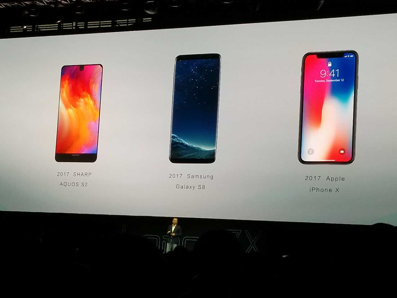 隨后,趙明展示了目前市面上三種代表性全面屏手機(jī),即夏普美人尖AQUOS S2、三星Galaxy S8 和iPhoneX。后兩款年度旗艦全面屏手機(jī)科技力滿滿,自不必多言,但從手機(jī)屏幕進(jìn)化史的角度來(lái)講,夏普美人尖AQUOS S2 的意義更勝一籌。
