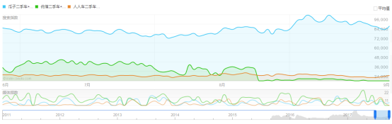 各個(gè)行業(yè)都有其銷售的旺季和淡季,二手車的行業(yè)也是如此,5月至8月是傳統(tǒng)二手車市場(chǎng)的淡季。隨著9月開始旺季到來,瓜子二手車直賣網(wǎng)9月百度指數(shù)表示突出,連結(jié)行業(yè)第一同時(shí),繼續(xù)將領(lǐng)先優(yōu)勢(shì)拉大,遙遙領(lǐng)先行業(yè)其他公司。