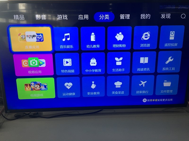 大家也可以返回當(dāng)貝市場(chǎng),在分類界面中找到直播應(yīng)用進(jìn)入,,如果想使用其它的點(diǎn)播、游戲、音樂、學(xué)習(xí)等應(yīng)用也可以在這里打開。