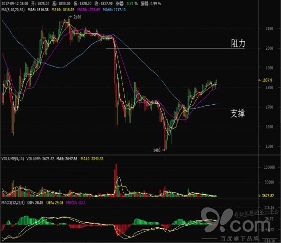 價(jià)格的 1 小時(shí)周期圖的偏短線走勢(shì)反彈格局依舊在延續(xù),而且反彈高點(diǎn)已經(jīng)上破此前下跌途中的反彈高點(diǎn),說(shuō)明多頭力量有增強(qiáng)勢(shì)頭,預(yù)期日內(nèi)價(jià)格將延續(xù)昨日的反彈行情,上方有望測(cè)試1950— 2000 區(qū)域,下方關(guān)注 1780 支撐,若下破走勢(shì)轉(zhuǎn)弱,將測(cè)試 1700 支撐。