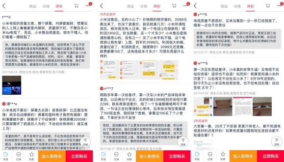 互聯(lián)網(wǎng)科技企業(yè)發(fā)展至今,已然呈現(xiàn)幾家歡笑幾家愁的局面。作為曾經(jīng)的行業(yè)大佬,樂視在近一年時間里深陷債務(wù)危機(jī),高層動蕩。 8 月 28 日,樂視網(wǎng)發(fā)布半年報稱,上半年虧損達(dá)6. 37 億元,同比下滑323.91%,電視生產(chǎn)上,曾經(jīng)的代工廠富士康也頒布頒發(fā)與樂視分道揚(yáng)鑣。而另一家小米科技,雖然在電視產(chǎn)品上憑借低價策略,吸引了部分人群,但是一味追求價格優(yōu)勢,卻在質(zhì)量上把關(guān)不嚴(yán),并不是常勝之道。就拿小米新推出的小米4A來說,塑料機(jī)身、屏幕易碎等硬件問題招來了很多用戶吐槽。天貓用戶譚先生直言:“小米電視屏幕劣質(zhì),屏幕和塑料機(jī)身之間竟有空隙”。