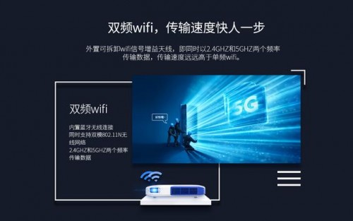 盡管,我國大多數(shù)家庭還在使用2.4G的路由器。但是考慮到未來網(wǎng)絡(luò)的快速升級,美高G10Pro微型投影儀采用了2.4G和5.0G的雙WIFI設(shè)計。既考慮到用于現(xiàn)在的實際應(yīng)用情況,和會滿足未來網(wǎng)絡(luò)的升級。